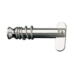 Axe en inox à éjection rapide. L’axe est équipé d’un linguet qui bascule pour sécuriser l’axe une fois celui-ci en place. le ressort opère une pression sur l’axe le maintenant bien en place et empêchant le linguet de se défaire.