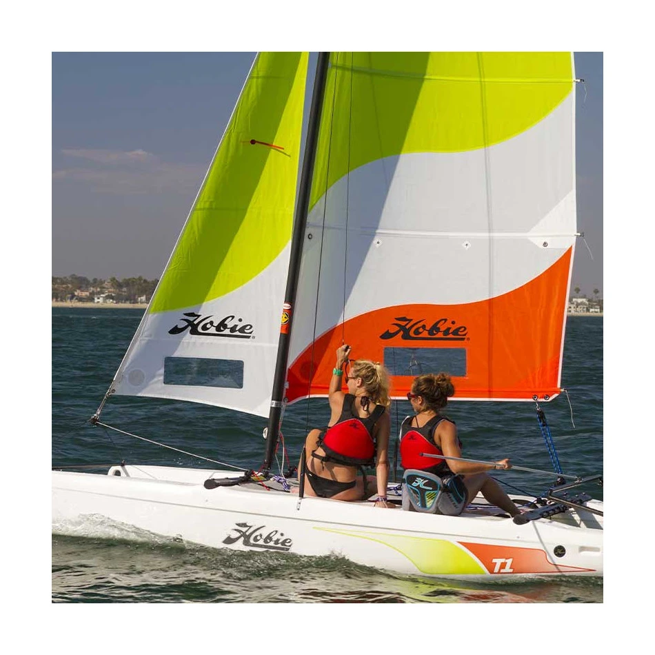 Ses volumes de coques, ses lignes tendus, font du HOBIE T1 un catamaran facile et performant. Ses qualités de navigation, sa robustesse, sa fiabilité ont déjà convaincu beaucoup d’écoles de voile.