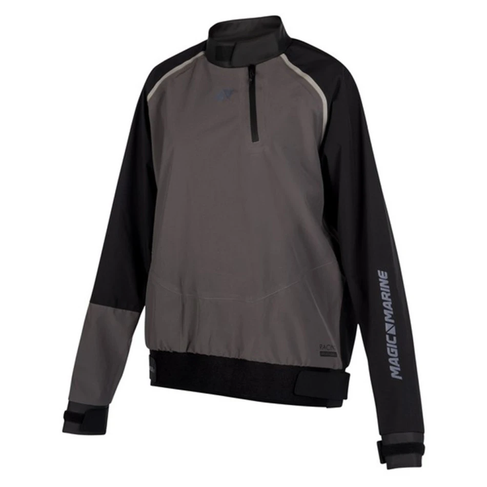 Le Coupe vent Magic Marine Racing Spraytop est une vareuse imperméable 2 couches avec coutures scellées offrant une bonne protection contre les embruns, le vent et la pluie. Le coupe vent Racing est conçu dans un tissu extensible. Le col dispose d’un velcro pour l’ajuster au cou ainsi qu’un Zip pour l’ouvrir et créer une ventilation. Les poignets ont également un velcro de serrage pour limiter les entrées d’eau. La taille du coupe vent est en néoprène afin d’adhérer à la combinaison et est équipé de 2 velcro de serrage.