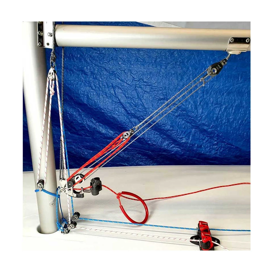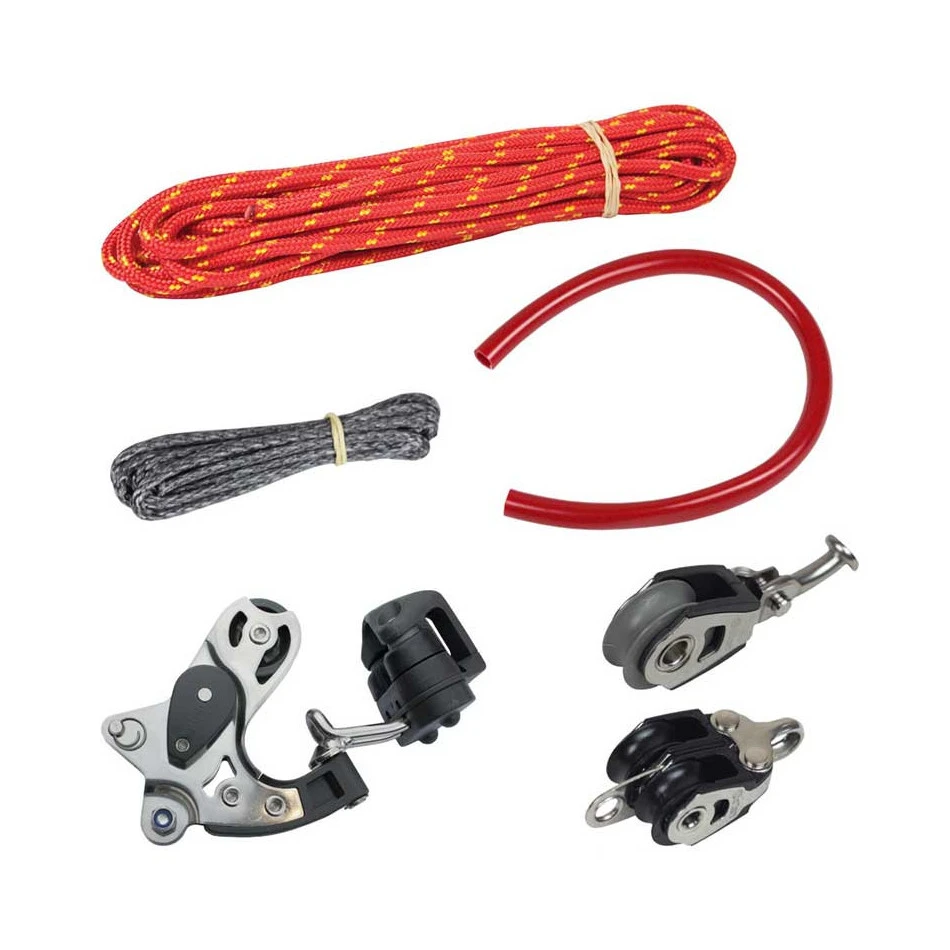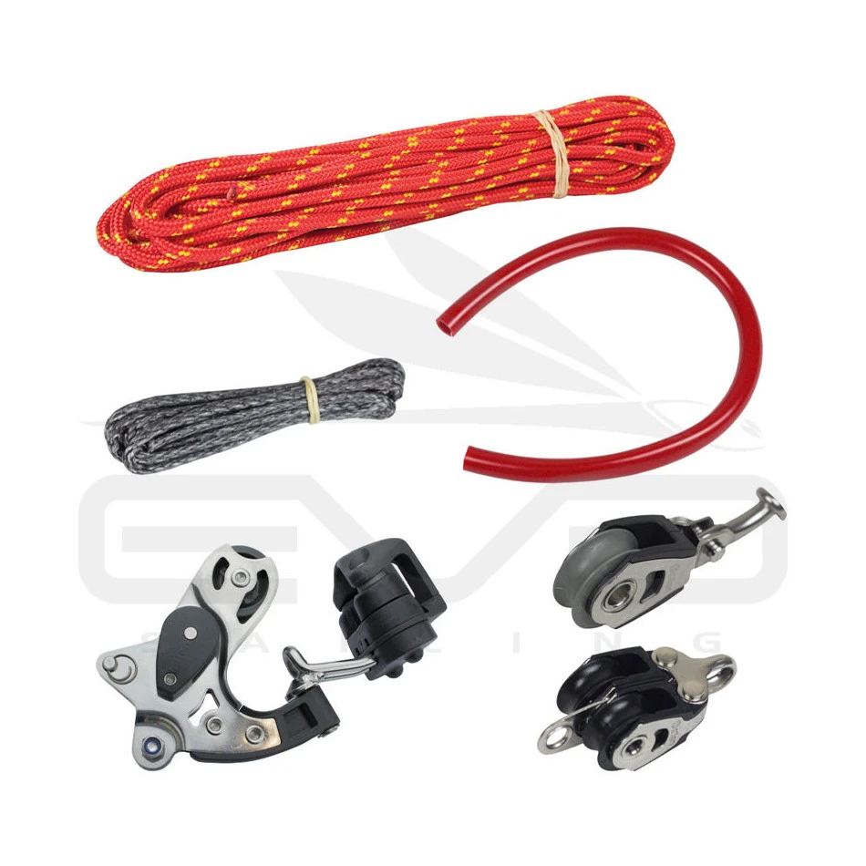 le Kit Hale bas Allen pour dériveur Laser est livré complet, avec la tourelle, la poulie double, la poulie de bome avec la clé de fixation, ainsi que le cordage nécessaire pour l’utiliser.