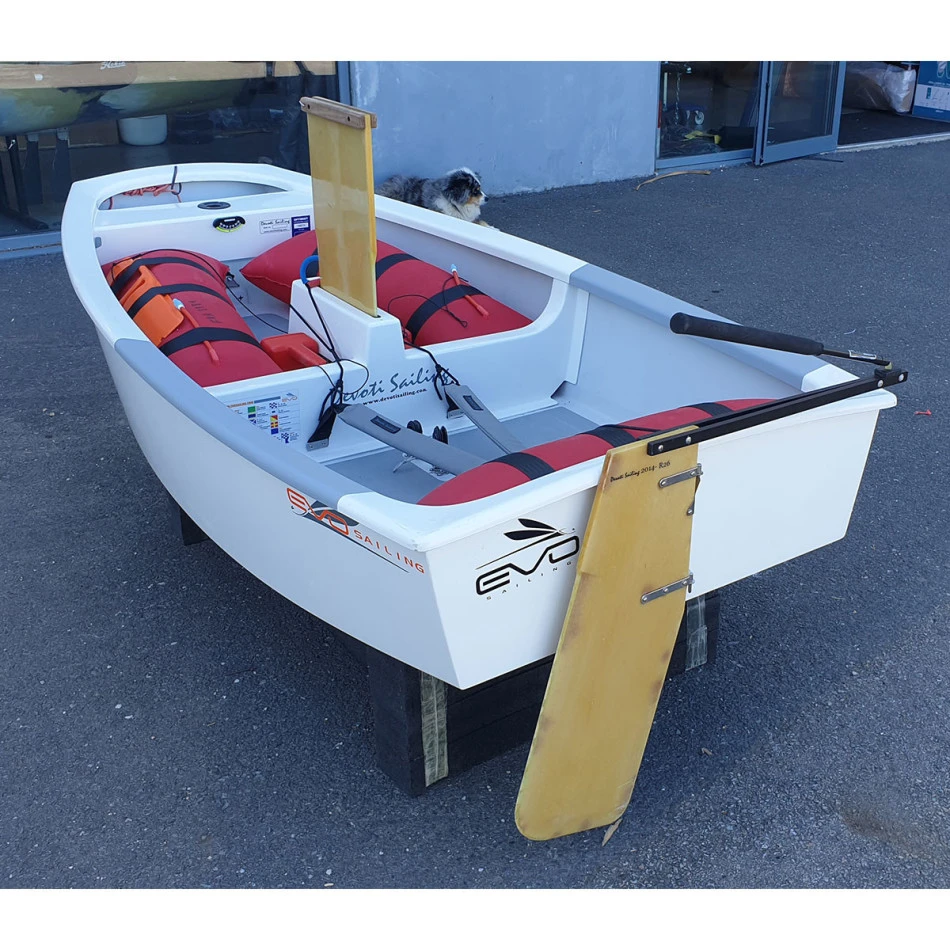 Optimist de régate Devoti C1X3D d’occasion. Cet Optimist à navigué 3 saisons avec un coureur du Team Evo Sailing. Le bateau est exposé depuis dans le magasin.