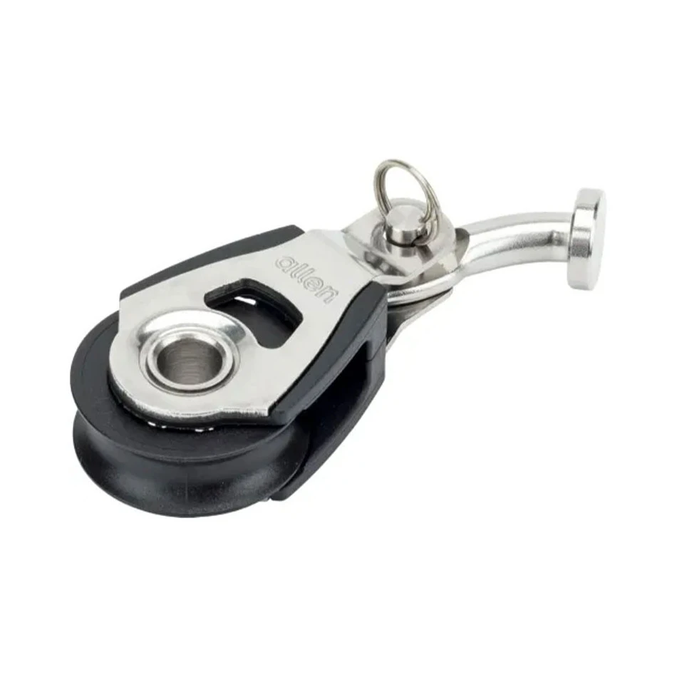 Poulie Allen 30mm à chape avec clé de fixation de Hale-bas pour dériveur Laser et ILCA. Cette poulie est la poulie haute du palan de Hale Bas. Le réa est évidé en son centre pour y passer le bout en Dyneema. Elle dispose d’un système de roulement à billes en inox et d’un réa plastique. Cette poulie sera adapté pour un usage débutant, loisir et école de voile. Dès lors que l’on va vraiment commencer à naviguer avec beaucoup de tension dans le Hale-bas, il faudra une poulie dite haute résistance.