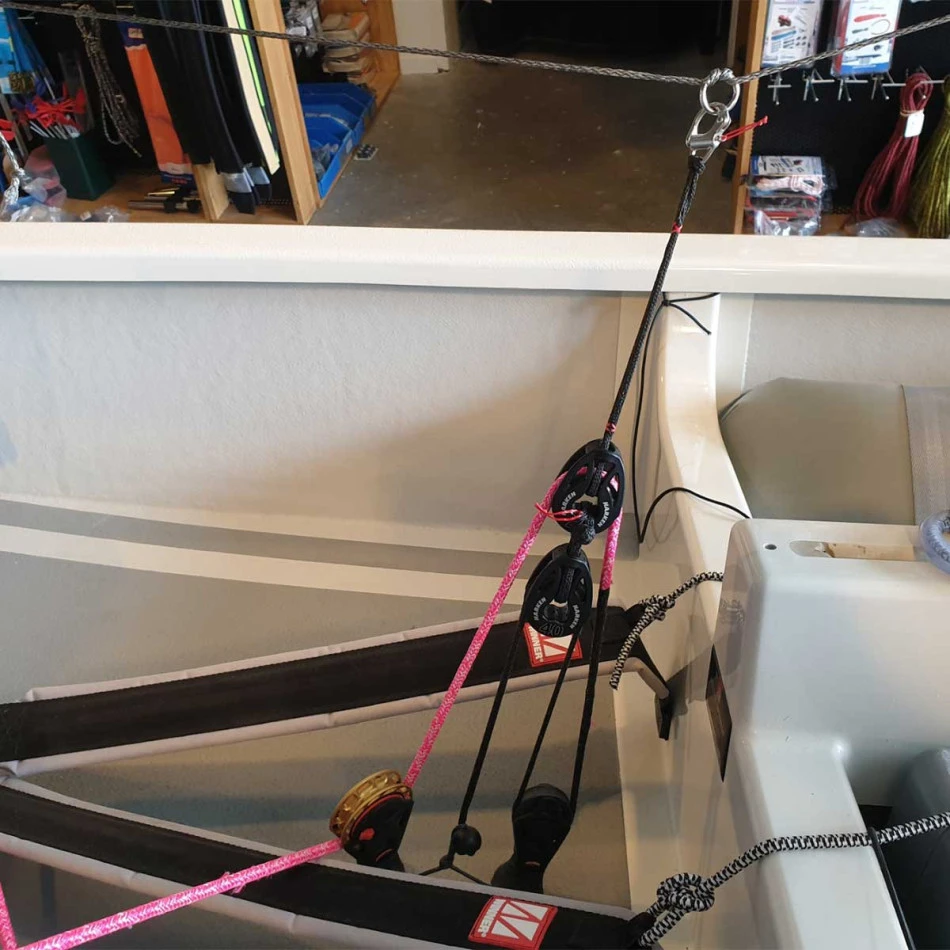 Certains coureurs aiment également pouvoir passer en 2 brins dans des conditions de vent trÚs faible. En débranchant la poulie du bas, vous pourrez le faire.